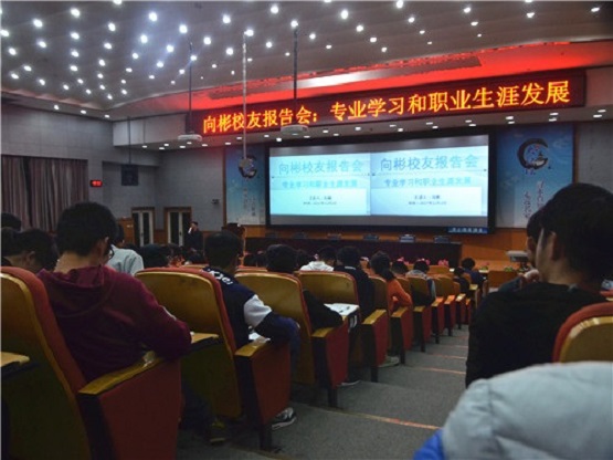 报告会伊始,向彬员工分享了他在母校难忘的求学经历和返校回家的喜悦之情,点滴回忆都饱含着对母校无限眷恋。随后向董讲述了自己摸石头过河的的创业之路。特别是通过对自己人生两次“重要选择”的分析,引导同学们要夯实基础、把握时机、敏锐果断、持之以恒。生动的案例和层层深入的启迪,引发同学们共鸣,会场气氛非常活跃。