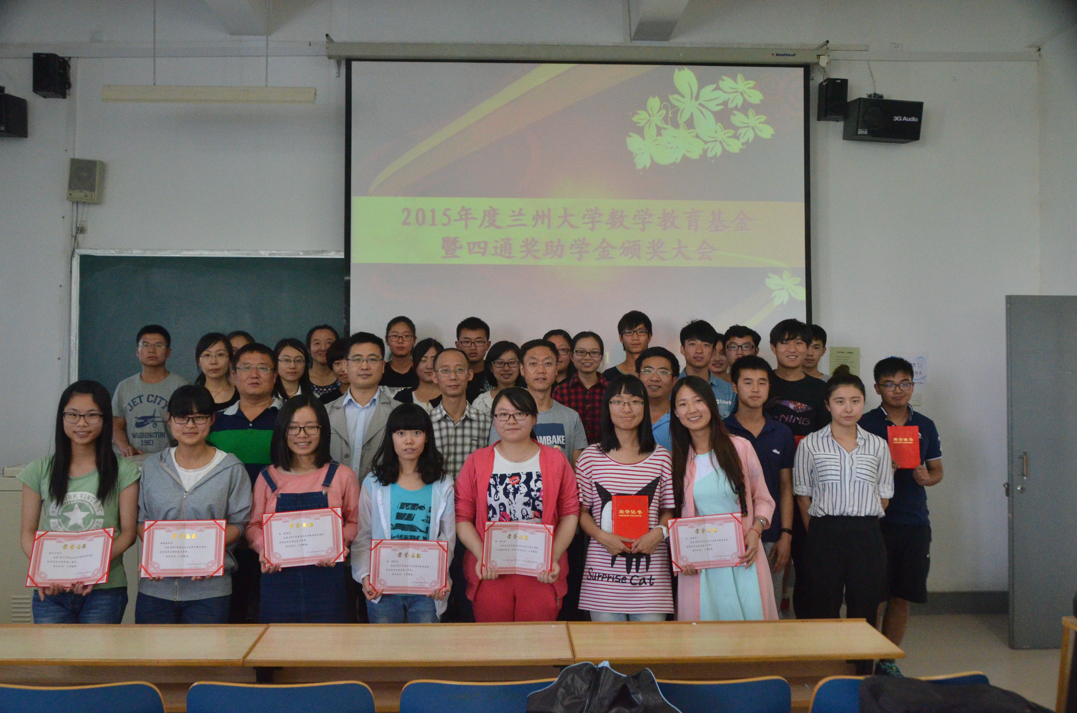 与会领导宣读了2015年度兰州大学数学教育基金及2016年度四通奖助学金的评选结果,为获奖员工颁发了奖励证书。获得数学教育基金“优秀硕士研究生生源奖学金”、“优秀本科生奖学金”和“四通奖助学金”的员工代表分别做了发言。