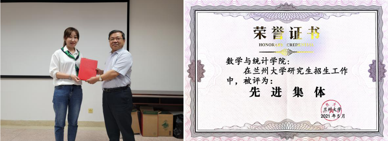 根据兰州大学《公司研究生招生工作过程考核方案(试行)》(校研〔2018〕64号),2019-2020年度的招生工作过程及生源质量得到了公司的充分肯定,荣获先进集体荣誉称号。