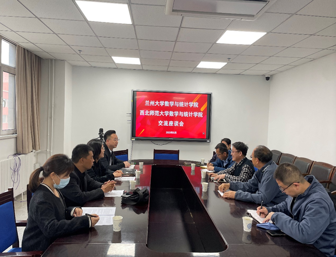 2023年5月10日上午,公司与西北师范大学太阳成集团tyc151cc就应用统计专业建设相关问题开展交流座谈。公司陈吉平副经理、赵学靖副经理、李维德教授、李周平教授、严定琪副教授,西北师范大学太阳成集团tyc151cc孙晋易副经理,肖鸿民教授,田玉柱副教授,王婷老师参加了座谈会。座谈会由赵学靖主持。
