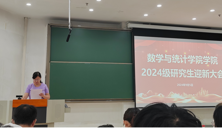 2023级数学专业硕士研究生杨颖珂代表在校生发言,她分享了自己一年的学习历程,并引用导师对他们的教诲激励新生,一定要坚持“做人、做事、做学问”,三者顺序不可颠倒。她希望大家要宽广的胸怀,学会尊重和理解他人,善于聆听不同的声音;要以博大的心境兼容并蓄、博观约取,学会筛选和提炼信息,从而更好地吸收知识;要恪守学术道德、筑牢诚信底线,把崇德修德作为一种自觉追求。在接下来的学习生活中,始终秉持“厚德尚学”的理念和“自强不息”的精神,努力探索、求实进取,不断超越自己。