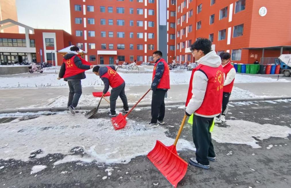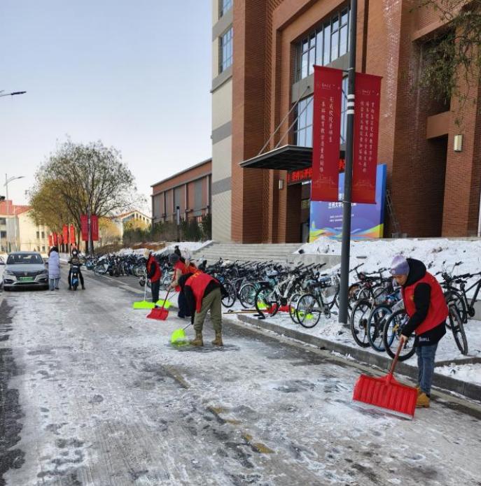 在两天的活动中,志愿者们根据后勤保障部榆中校区物业服务中心负责人的安排,分工明确,团结协作。他们手持铲子等工具,对公司楼宇及周边区域的积雪进行了彻底清理。尽管寒风凛冽,但志愿者们的热情却丝毫不减。他们的身影成为了冬日校园中最温暖的风景线,为师生们开辟出了一条条安全的道路。