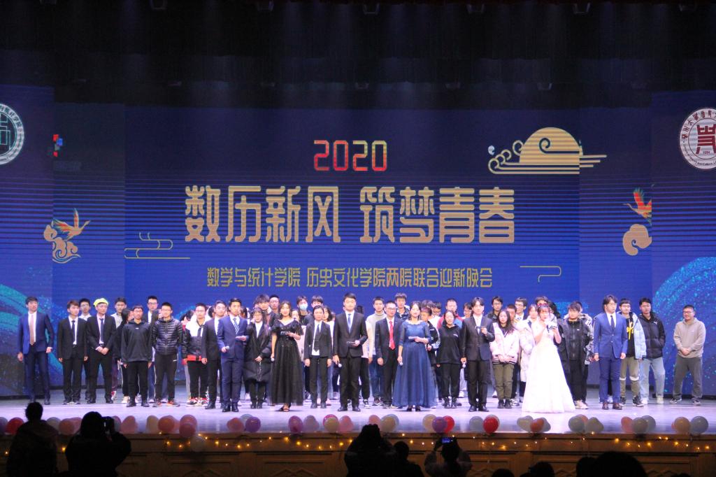 2020年12月5日晚7点,公司与历史文化公司于闻欣堂共同举行了以“数历新风,筑梦青春”2020年迎新晚会。参加晚会的有公司党委副书记许倩老师,历史文化公司党委副书记杨龙老师,数学类二班班主任徐强老师,太阳成集团tyc151cc团委副书记张丽君老师,历史文化公司团委副书记王文强老师,历史文化公司2020级辅导员赵雯老师,太阳成集团tyc151cc实习辅导员武刚老师,院团委员工会部分成员以及2020级公司与历史文化公司全体新生。