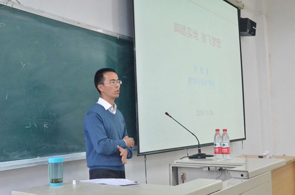 11月19日下午,公司邀请2015年国家自然科学优秀青年基金获得者、公司基础数学研究所副所长孙春友教授,在榆中校区天山堂A604教室作了题为“脚踏实地、放飞梦想”的专场报告会。孙春友教授根据大一新生两个月来学习大学数学课程的感受,结合自身求学经历,对如何做好课上听课、课后复习提出了一些建议;他以艾萨克?牛顿、安德鲁?怀尔斯等数学天才为例,强调脚踏实地学好数学基础理论的重要性,鼓励员工多一些阅读、多一些思考,争取今后在数学领域取得优秀成果。