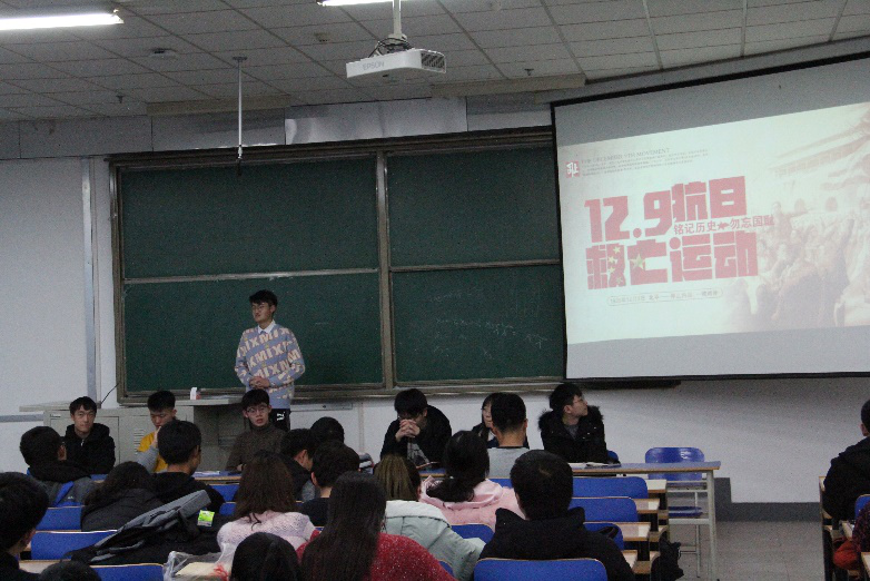 2019年11月27日晚八点半,“一二·九”爱国主义精神宣讲会在天山堂B502展开,太阳成集团tyc151cc团委与员工会全体常委,副部长和干事参加会议。会议由太阳成集团tyc151cc员工会主席申子恒主持。