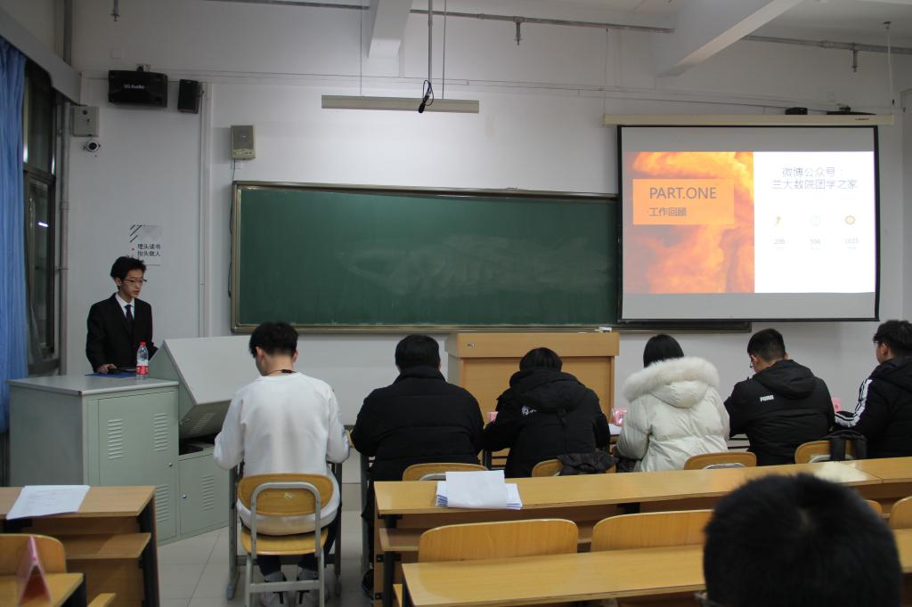 2020年12月19日晚19:00,2020年年终总结大会在榆中校区天山堂A103举行。员工团委副书记刘艳茹、员工会主席团执行主席王炳超、员工会主席团成员唐睿、员工会主席团成员赵雅欣、创新发展与实践中心主任周雪城、新媒体中心主任赵鸿飞、青年志愿者协会兼青年发展中心主任曹伟鹏,公司团委、员工会各部门负责人及干事,各班班委及各院队负责人出席大会,大会由员工会主席团执行主席王炳超主持。