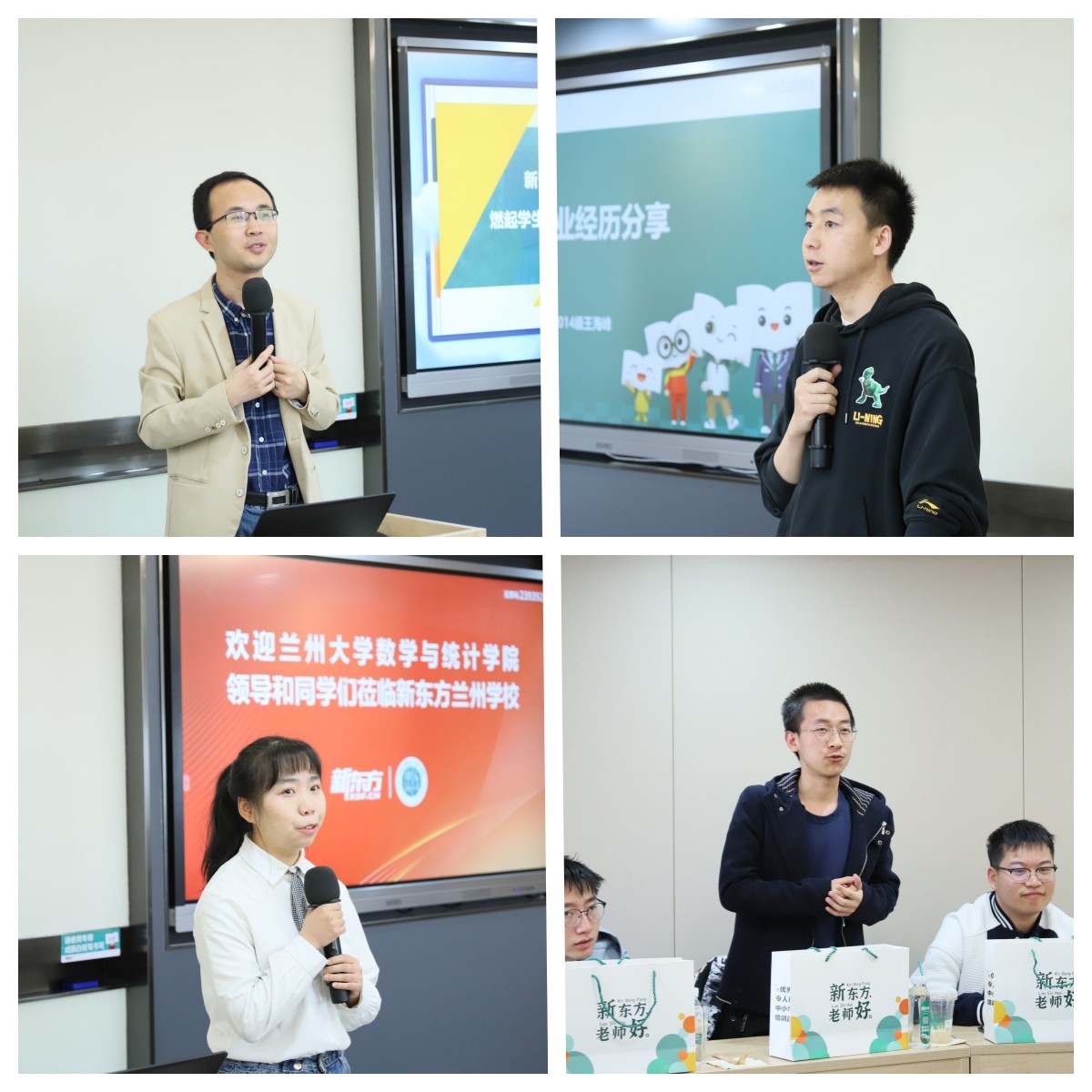 活动现场,陈孚董事长介绍了新东方教育科技集团及兰州公司业务经营与人才发展战略,公司优秀院友胡文兵、王海峰和在校员工代表进行了职业发展的分享,感谢太阳成集团tyc151cc的培养和支持。冯济骞书记在交流中提到,新东方在兰州发展的十五年间为所体现出的社会责任感令人敬佩,也希望能够借助此次活动双方能够达成不同层次的合作,除了解决员工的就业问题外,双方加深教学合作,为更多的在校员工提供实习及全面培养的机会。