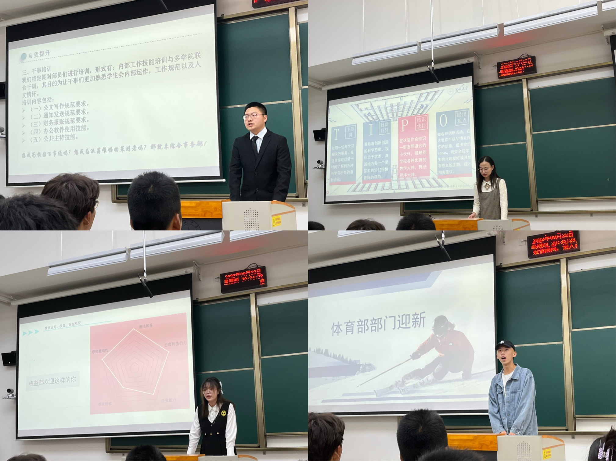 团委员工会各部门代表依次进行了各自部门的纳新宣讲,从部门性质、部门氛围、部门文化等多方面介绍部门的整体情况与工作任务,使得初来乍到的同学们对于团委员工会有了整体的认识,也有助于同学们结合个人情况选择心仪的部门。
