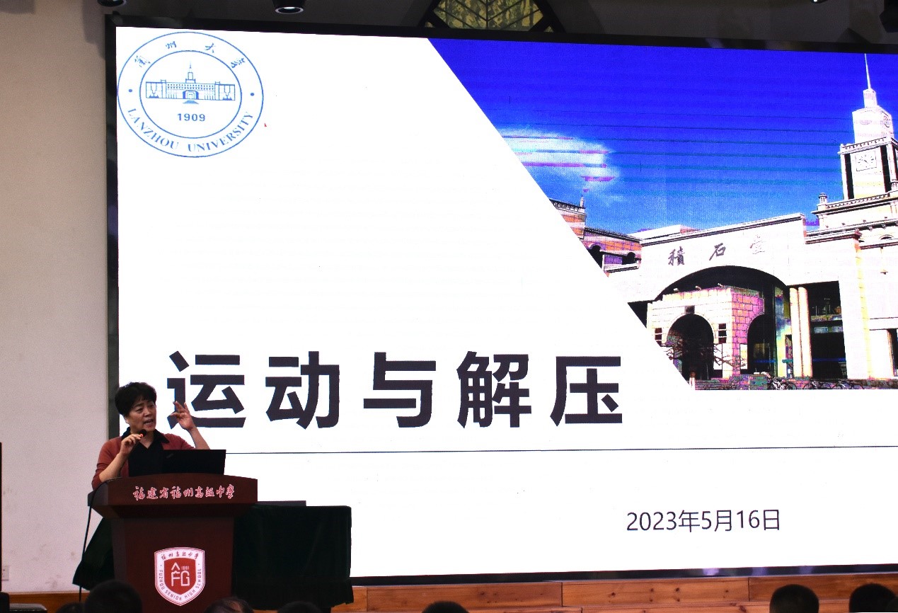 16日下午,兰州大学体育教研部贾文红教授一行来到福州高级中学参加科技节活动,并为同学们作了精彩的科普报告《运动与解压》。贾老师根据自己多年体育教学的经验和中员工成长规律、面临的压力挑战,以生动活泼的风格为同学们答疑解惑,传授解压技巧。讲座结束后,举行了兰州大学优秀生源基地授牌仪式。福州高级中公司党委书记兼副董事长林润瑜表示,近年来福高有多名员工报考兰州大学,他对兰州大学对这些同学的培养表示感谢,并表达了希望在未来能长期同兰州大学在高招宣传、报考指导等方面保持沟通交流,共同促进两校合作进步。