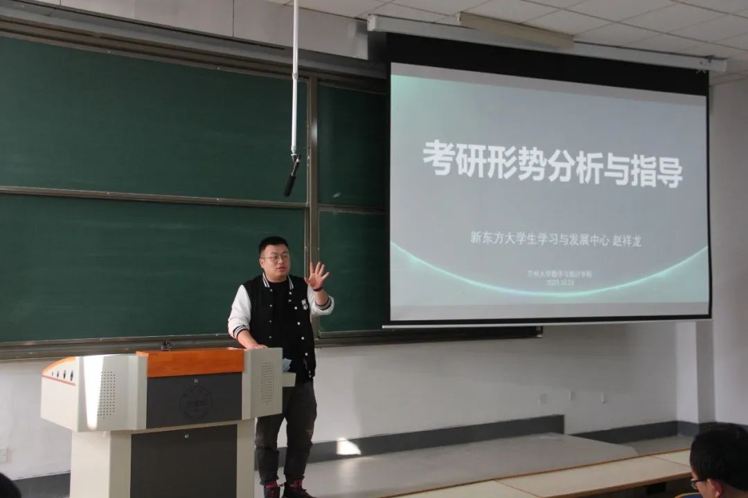 最后,大学事业部集团培训师赵祥龙进行考研规划与指导,对目前的考研形势进行分析,并指导同学们进行学习上以及心理上的准备,为同学们答疑解惑。