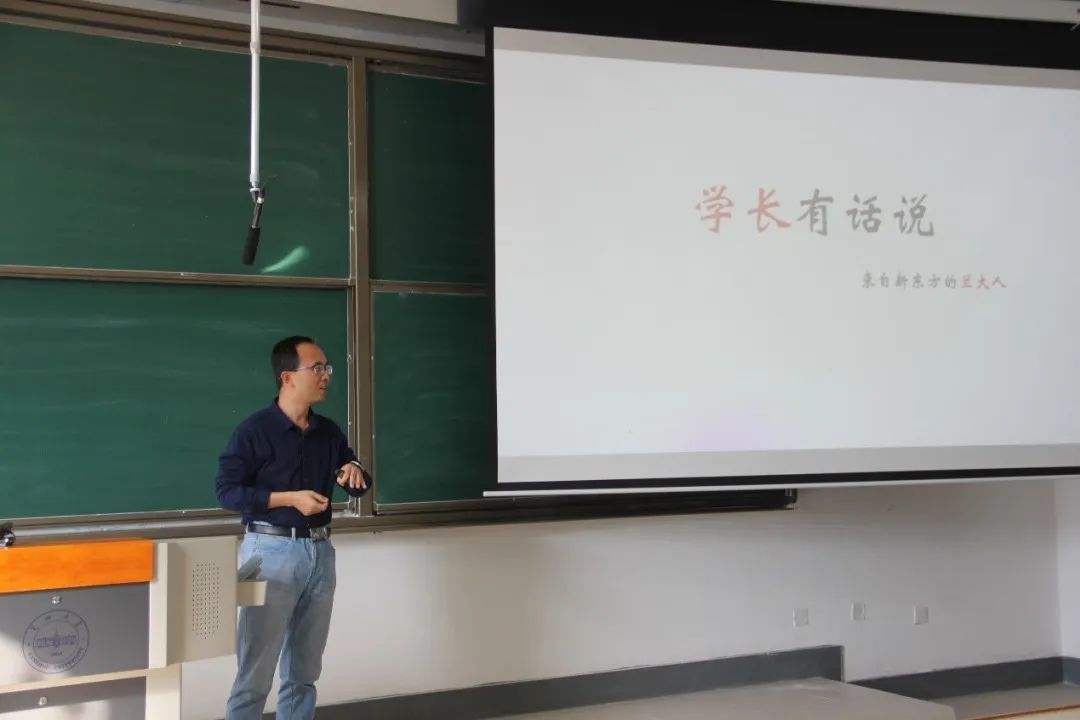 讲座上,陈孚董事长首先向同学们介绍了新东方的发展史、定位、业务体系以及新东方的使命、企业文化与践行的社会责任。新东方面对时代变革所做出的创新与突破启发同学们要将目光放长远,不放弃不气馁,“不设边界,无限可能”。